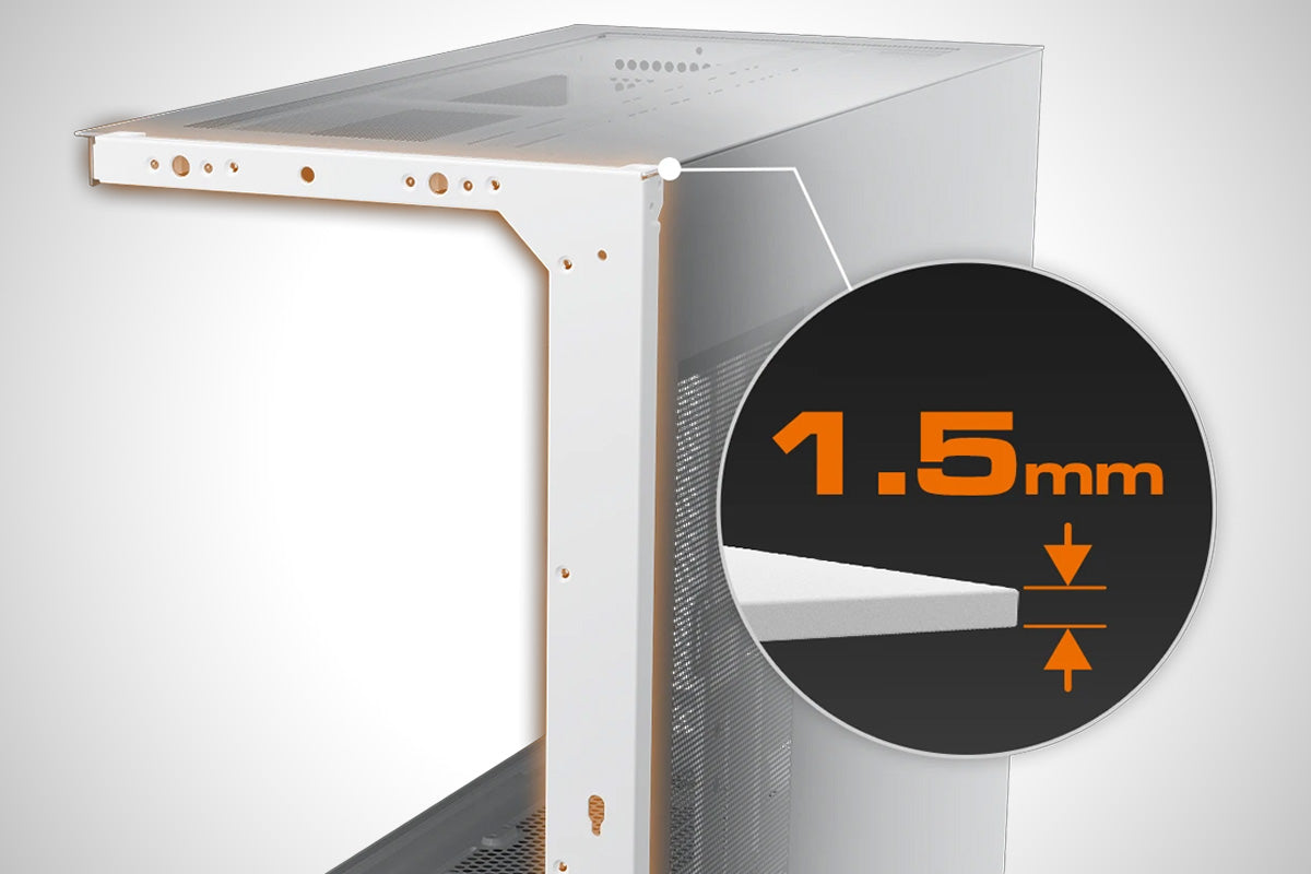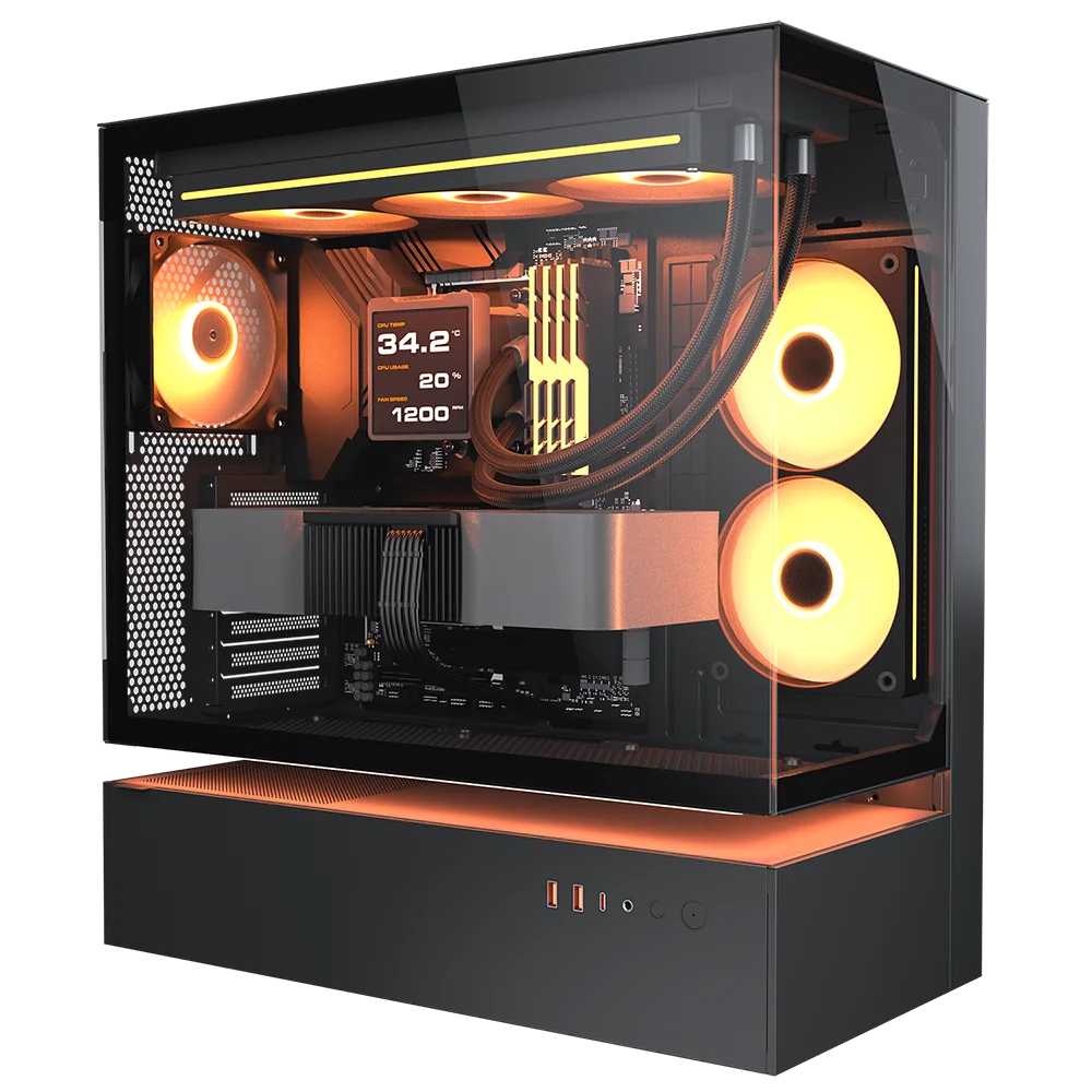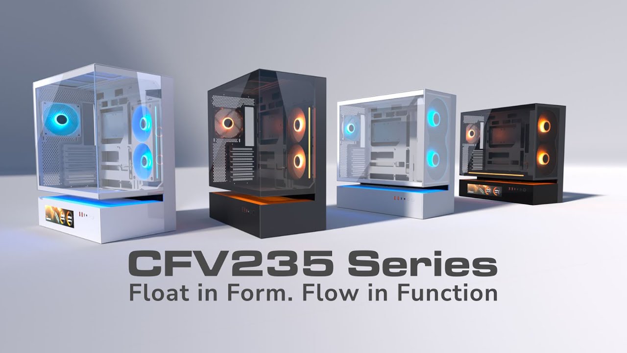 The CFV235 is a new kind of PC case featuring the innovative Central Floating Ventilation (CFV) structure. This divides the PSU cabin and main chamber, retooling the open space in between as a cooling advantage by accessing extra ventilation. An optimal combination of a full panoramic view, compact footprint and architecturally-enhanced cooling, the CFV235 empowers airflow beyond ordinary dimensions.