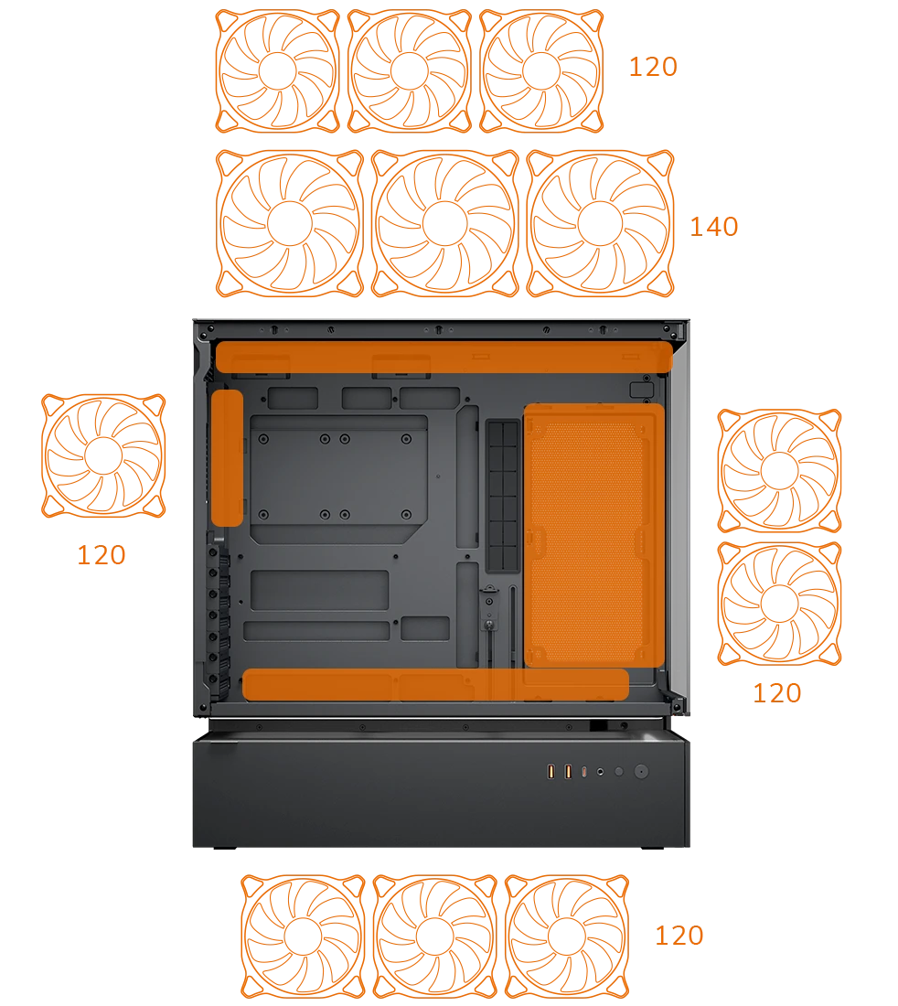 Top: 120mm x 3 / 140mm x 3