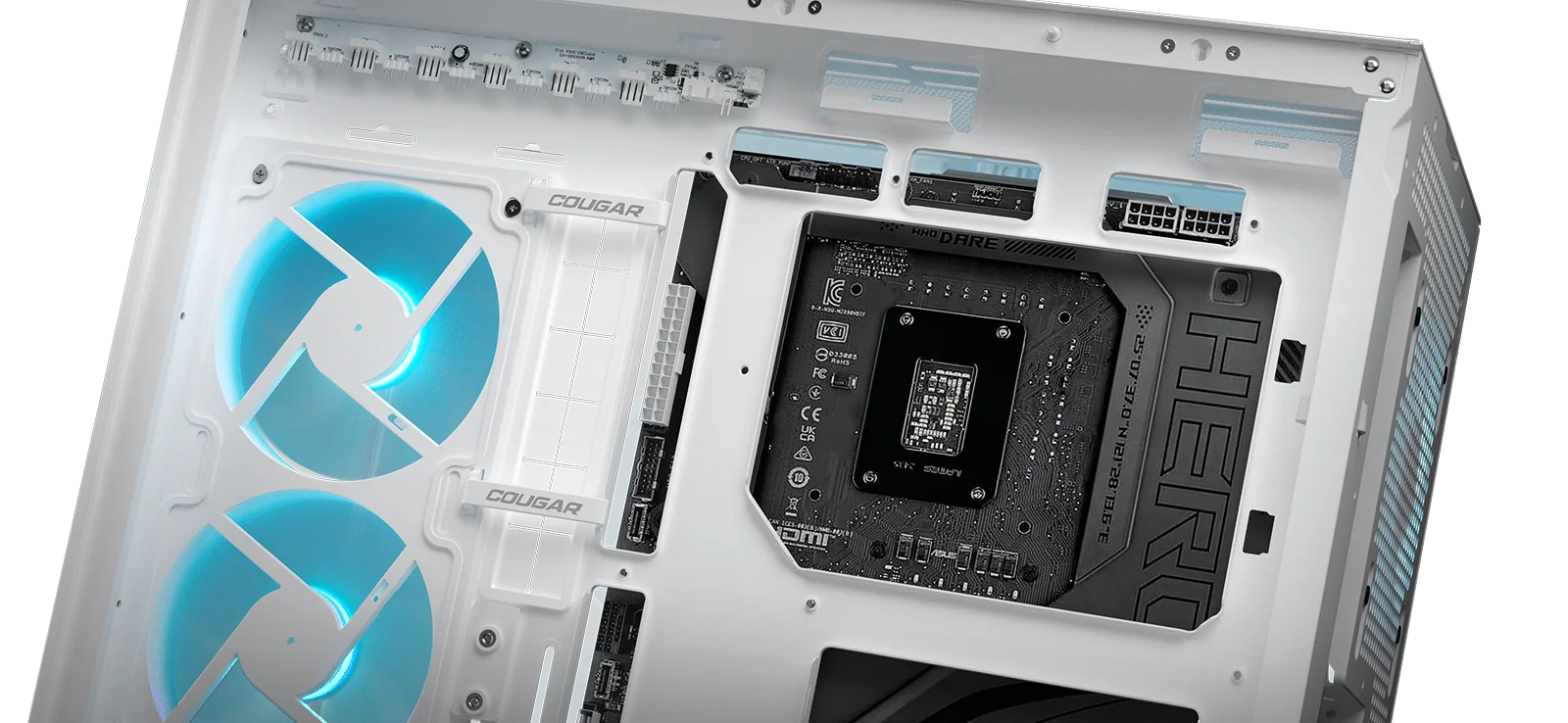Conventional design squeezes both the PSU - a prime source of heat - and critical components in the same space, restricting airflow access to only the top, front and rear panels. The Central Floating Ventilation divides the PSU cabin and main chamber with a structural hollow that lets air move with greater freedom and purpose. This free-floating architectural separation also gives the CFV235 series its unique, progressive visual identity.